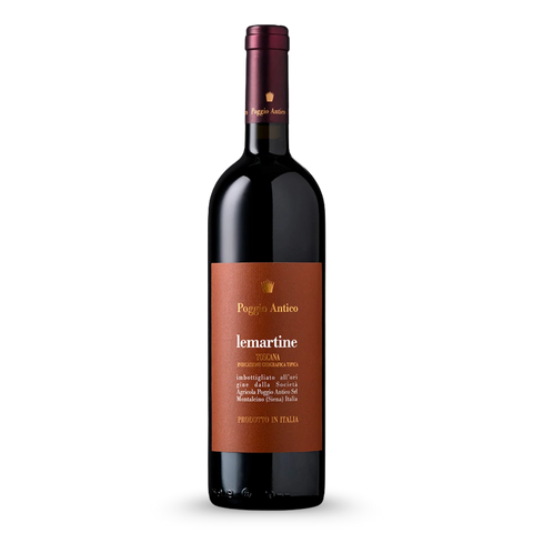 Poggio Antico Lemartine 2021 is een diep robijnrode wijn met een geconcentreerde kleur. In de geur presenteert hij zich als een krachtige maar beheerste rode wijn, met een combinatie van rijpe donkere tonen, een hint florale elegantie en een duidelijke indruk van zijn kalkrijke herkomst. In de mond is Lemartine vol van body, met een solide structuur en een kern van rijp fruit, ondersteund door rijpe tannines en een frisse zuurgraad die het geheel spanning en lengte geeft. De stijl is direct en uitgesproken, maar nooit schreeuwerig, met een evenwicht tussen kracht en verfijning dat typisch is voor Poggio Antico. Schenk Lemartine 2021 bij voorkeur rond 16–18 °C en geef de wijn in zijn jeugd wat tijd in de karaf om volledig open te komen. Aan tafel komt hij prachtig tot zijn recht bij gegrild of geroosterd rood vlees, lamsrack, stoofschotels met rund of wild, rijke pastagerechten met vleessaus en bij stevige, gerijpte harde kazen, waar zijn combinatie van concentratie, frisheid en verfijnde kracht een duidelijk gastronomisch profiel laat zien.